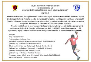 Nesër, duke filluar nga ora 11:00 në Sallën e Kulturës, mbahet Akademi Përkujtimore për veprimtarinë e Enver Demakut, ish hendbollistin e veteranin e Klubit të Hendbollit “Drenica”.